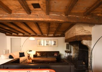 L’habitat est au 1er étage, on y accède depuis la cour centrale par le grand escalier de pierres qui donne sur le balcon de bois et le balcon en fer forgé. Les trois pièces communes sont la grande cuisine, le salon – salle à manger avec la grande cheminée et le salon – bibliothèque.